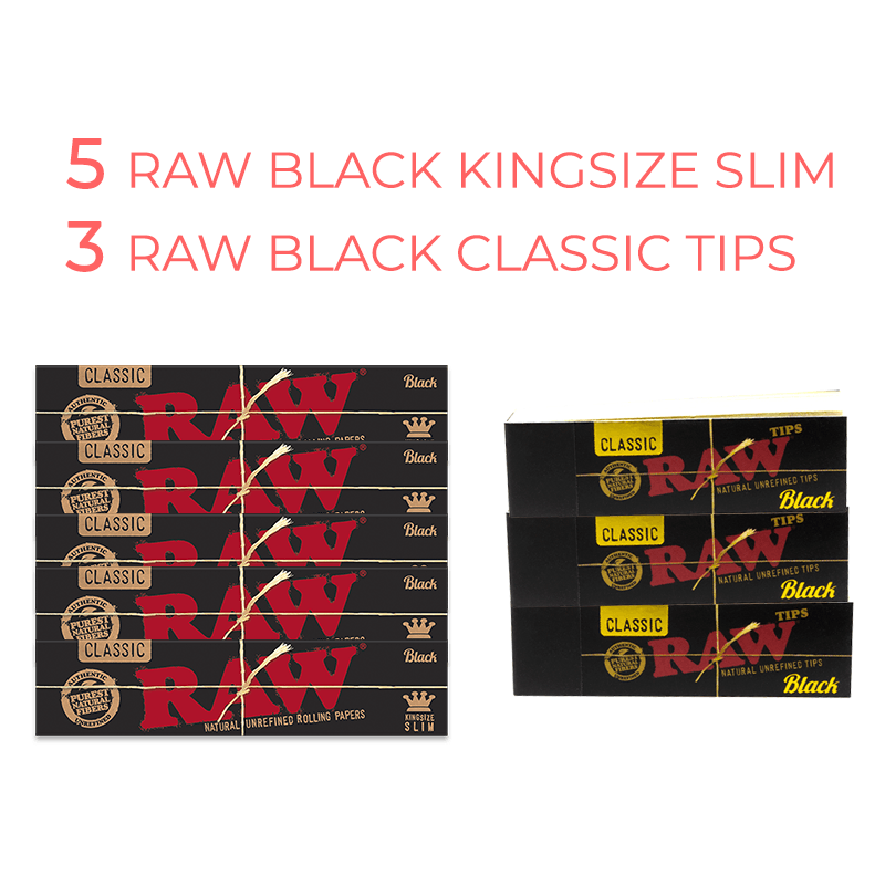 5x RAW Black Kingsize + 3x RAW Black Tips